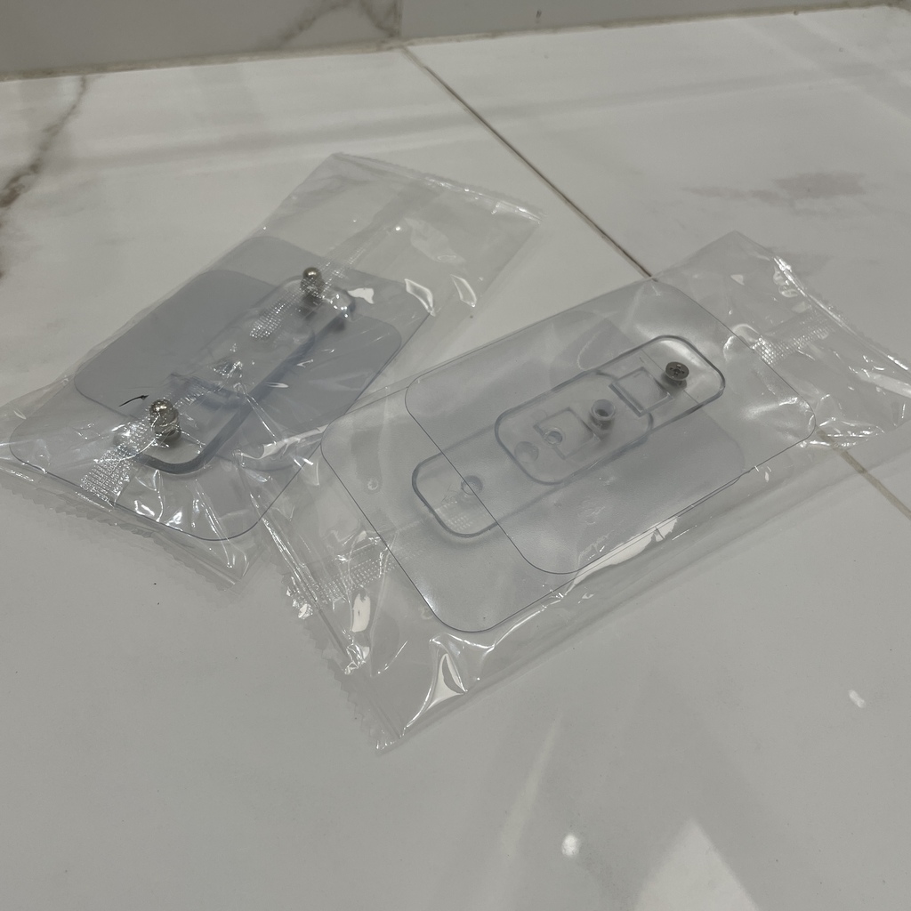 Trae dos set de accesorios para la instalación, podes usar el que más te guste, tornillos y tarugos, y adhesivos si no querés o podés agujerear la pared.